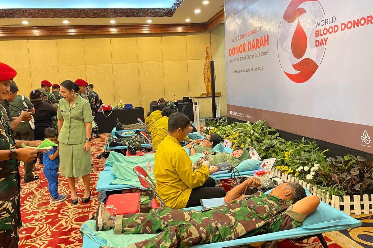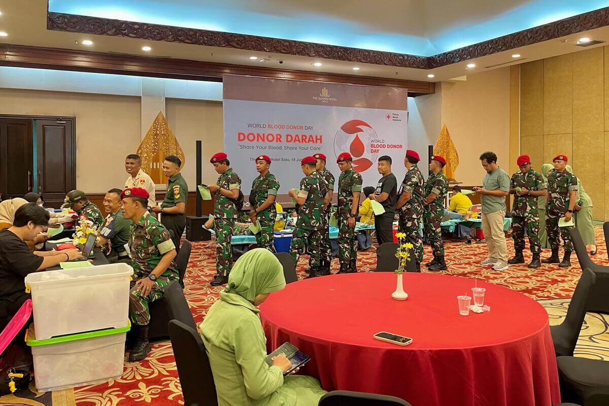 Dalam rangka menyemarakkan peringatan Hari Donor Darah Internasional, The Sunan Hotel Solo bekerja sama dengan PMI Kota Surakarta kembali menggelar kegiatan donor darah di Ballroom pada Rabu (18/6). Kegiatan sosial ini merupakan bagian dari program rutin yang diselenggarakan setiap tiga bulan sekali dan terakhir dilaksanakan pada Februari 2025.
