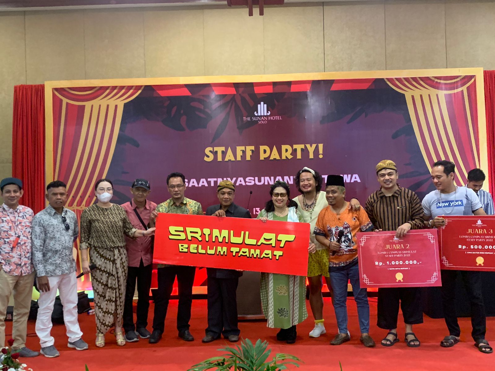 Manajemen The Sunan Hotel Solo menggelar acara Staff Party  pada Senin, 13 Juni 2022 pkl. 11.00 di Grand Ballroom. Acara Pesta Karyawan ini diisi dengan beragam acara seperti Band, atraksi DJ sekaligus lomba Cosplay Srimulat. Acara dipandu oleh duo lawak Tony Belok Kiri dan Chepy . Pada kesempatan ini Manajemen Juga memberikan apresiasi kepada grup lawak legendaris Srimulat. Penghargaan diterima oleh Eko Saputra (Koko) putra dari Bapak Teguh dan Ibu Jujuk selaku pewaris resmi Srimulat.
