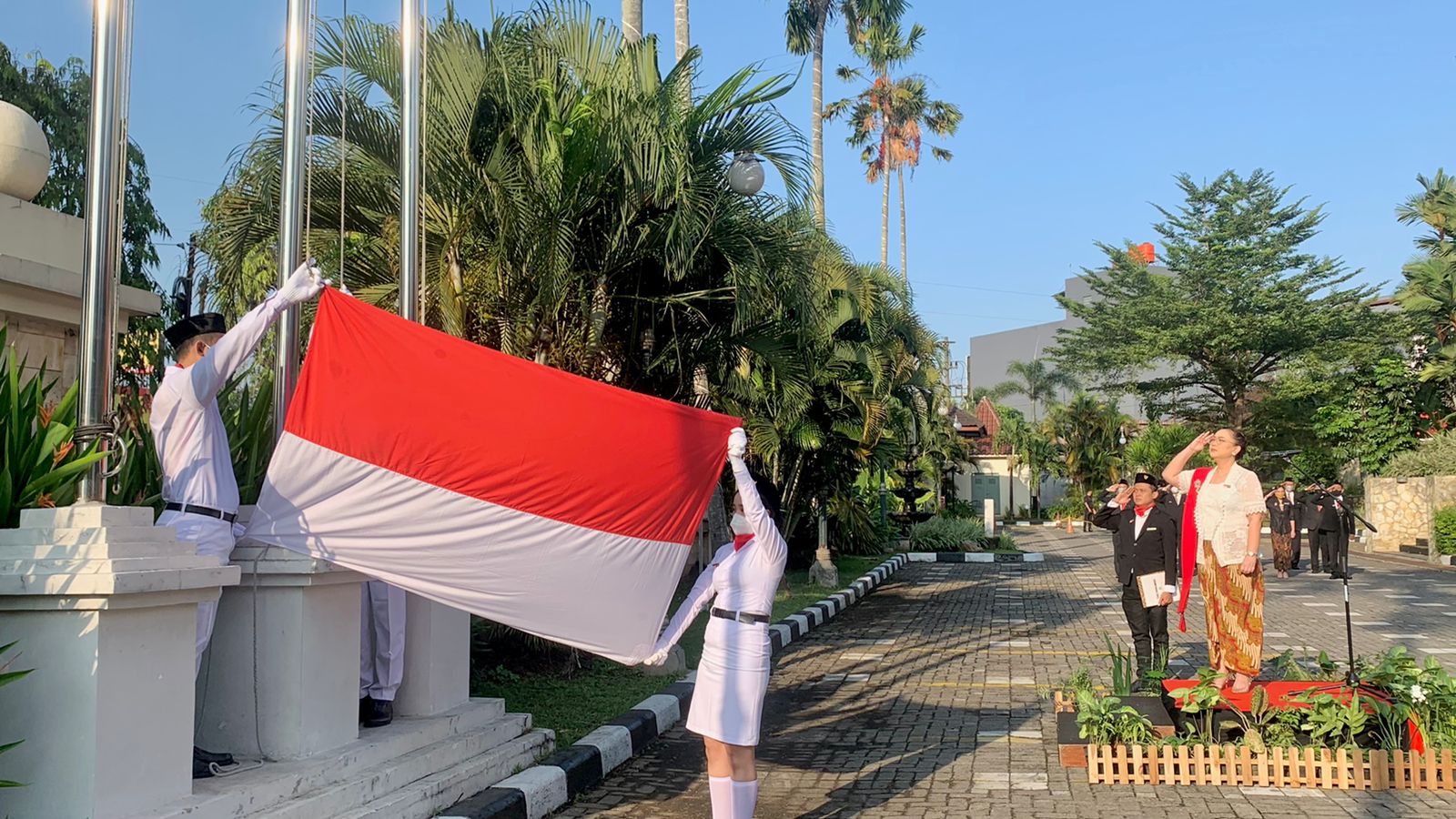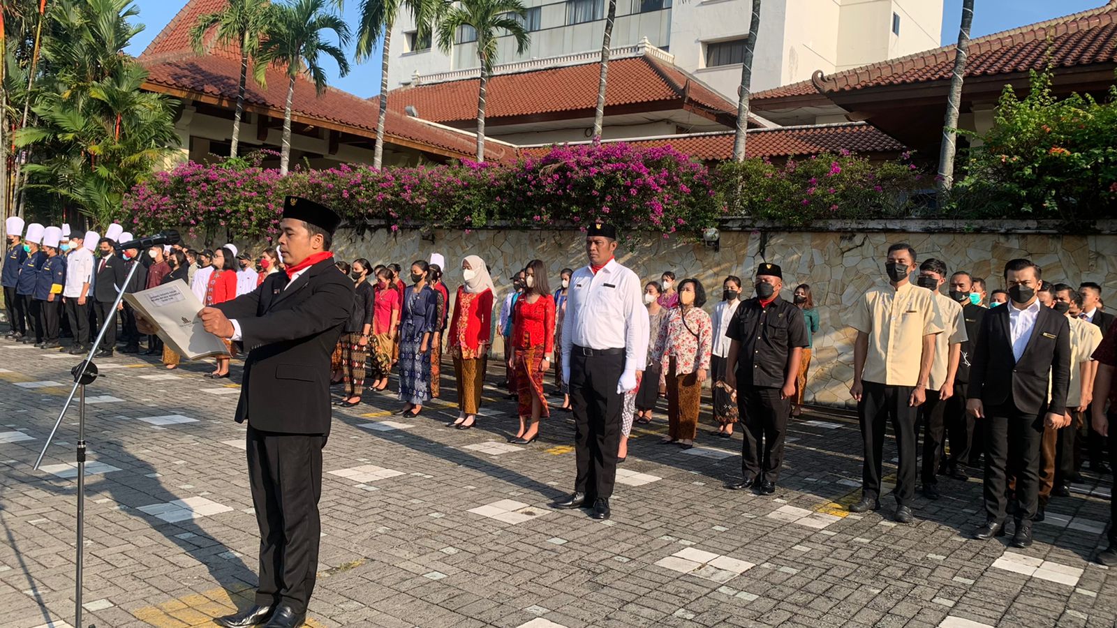 Upacara bendera berlangsung khidmat dengan dipimpin oleh Inspektur Upacara General Manager The Sunan Hotel Solo, Retno Wulandari. Dalam sambutannya, setelah vacum selama 2 tahun dikarenakan pandemi, tahun ini The Sunan Hotel Solo kembali menggelar Upacara bendera yang selalu rutin diadakan setiap tahun.